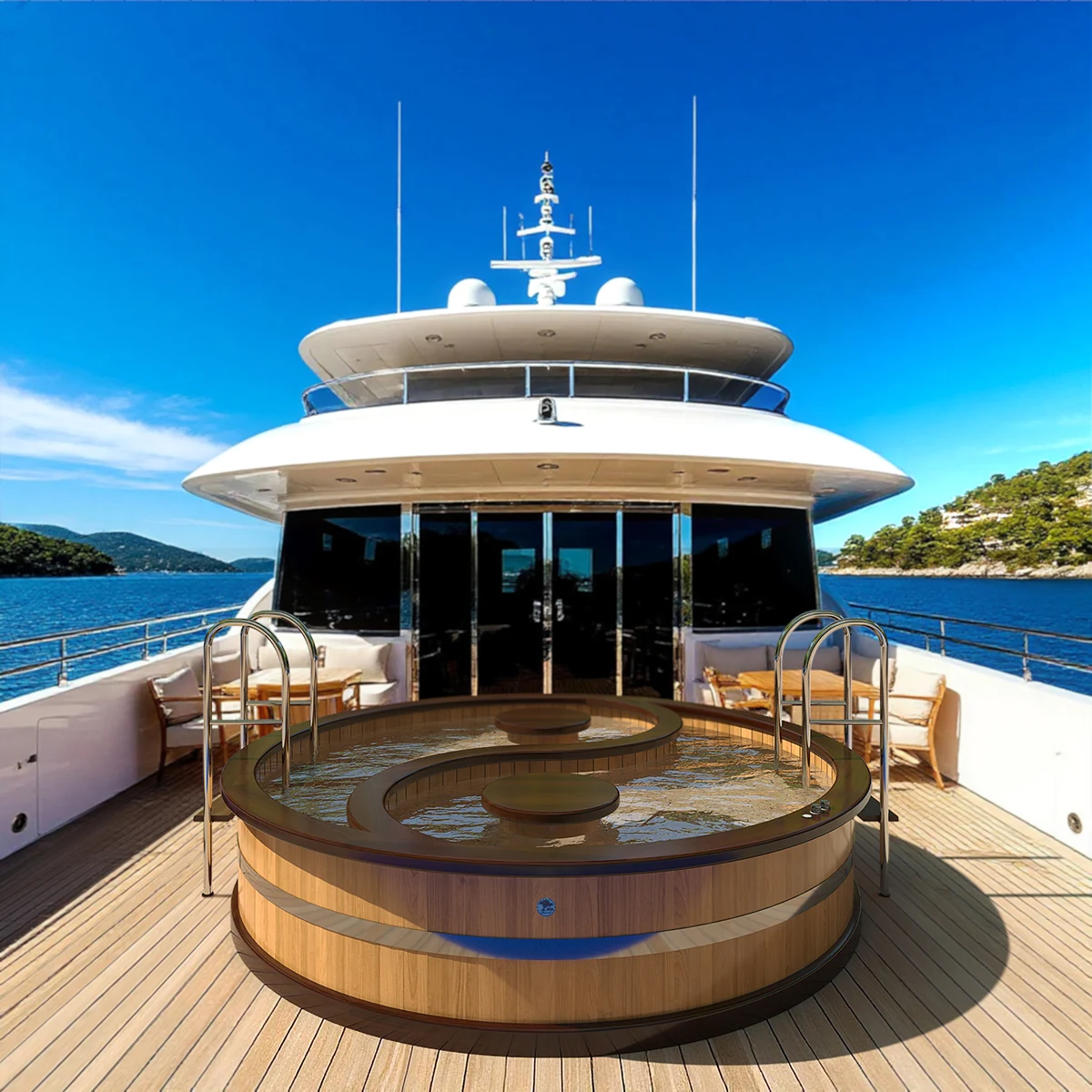 Для удобства использования, мы предлагаем оснащение наших купелей внутренними и внешними лестницами, поручнями, способствующими комфортному входу и выходу из воды, объёмными и функциональными подиумами, позволяющими скрывать оборудование и добавляющими эстетический внешний вид купели.