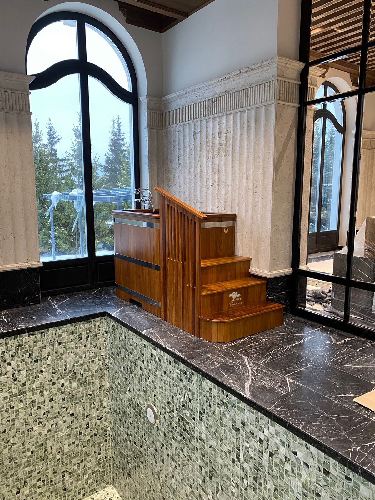Стенки купели, лестницы и подиумов после сборки проходят дополнительную высококачественную обработку, шлифовку, с устранением всех остаточных дефектов. Затем, древесина проходит трёхэтапную обработку маслами, которая осуществляется при разных температурах. Это необходимо для лучшей кристаллизации масла, что гарантирует сохранение древесины от гниения в течение многих лет.
